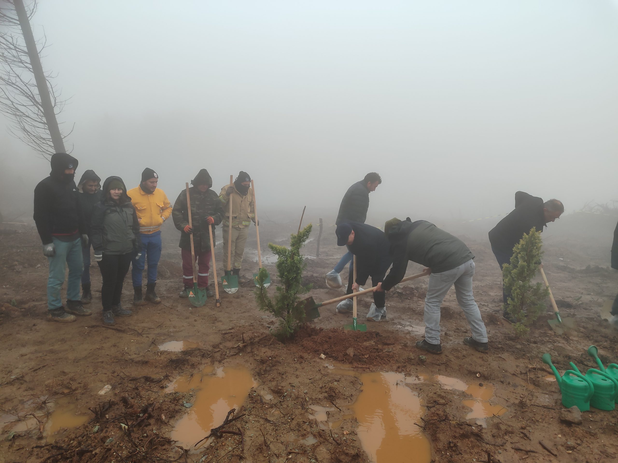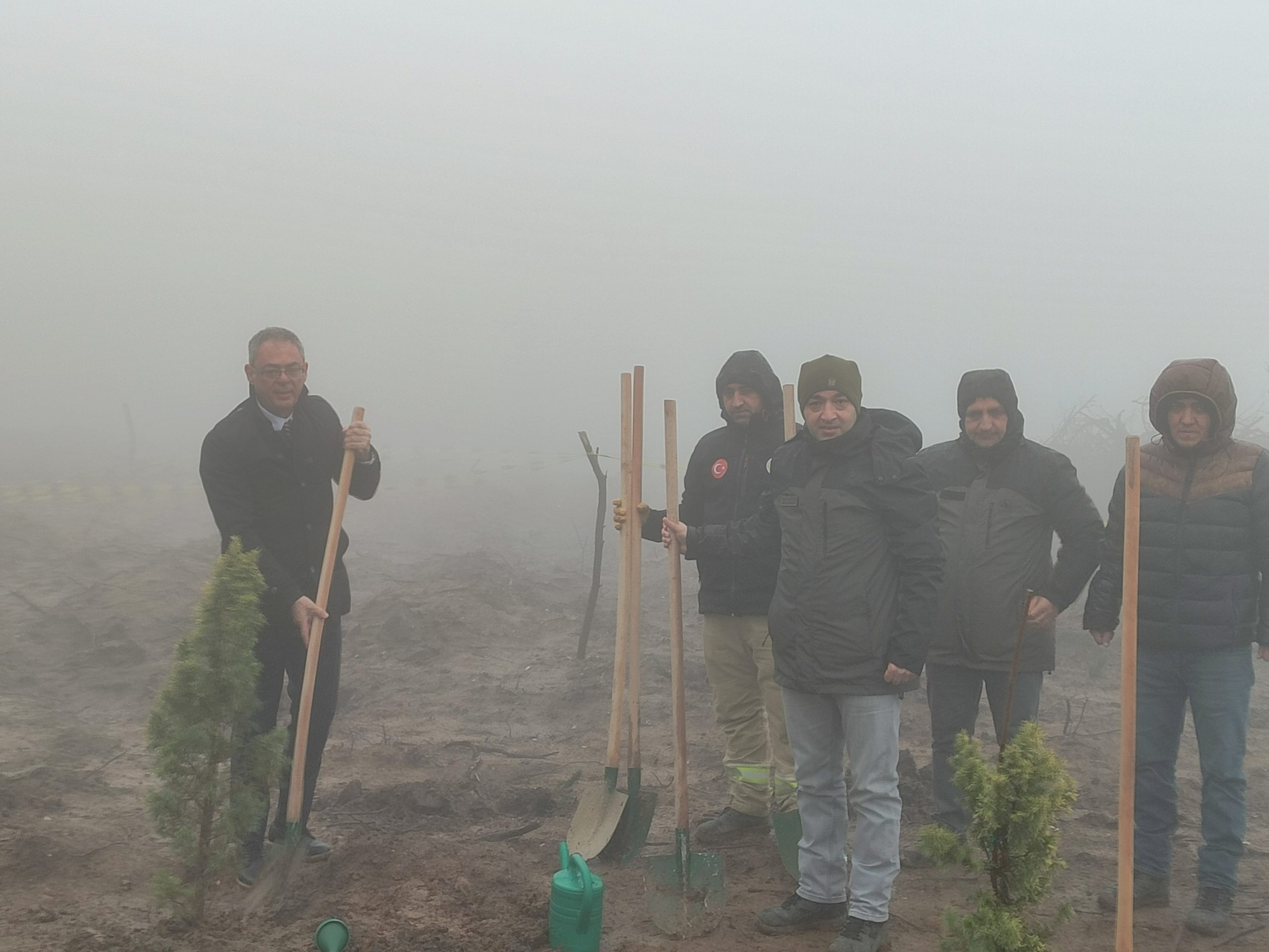 Ardından fidan dikim alanına geçilerek fidanlar toprağa bırakıldı.