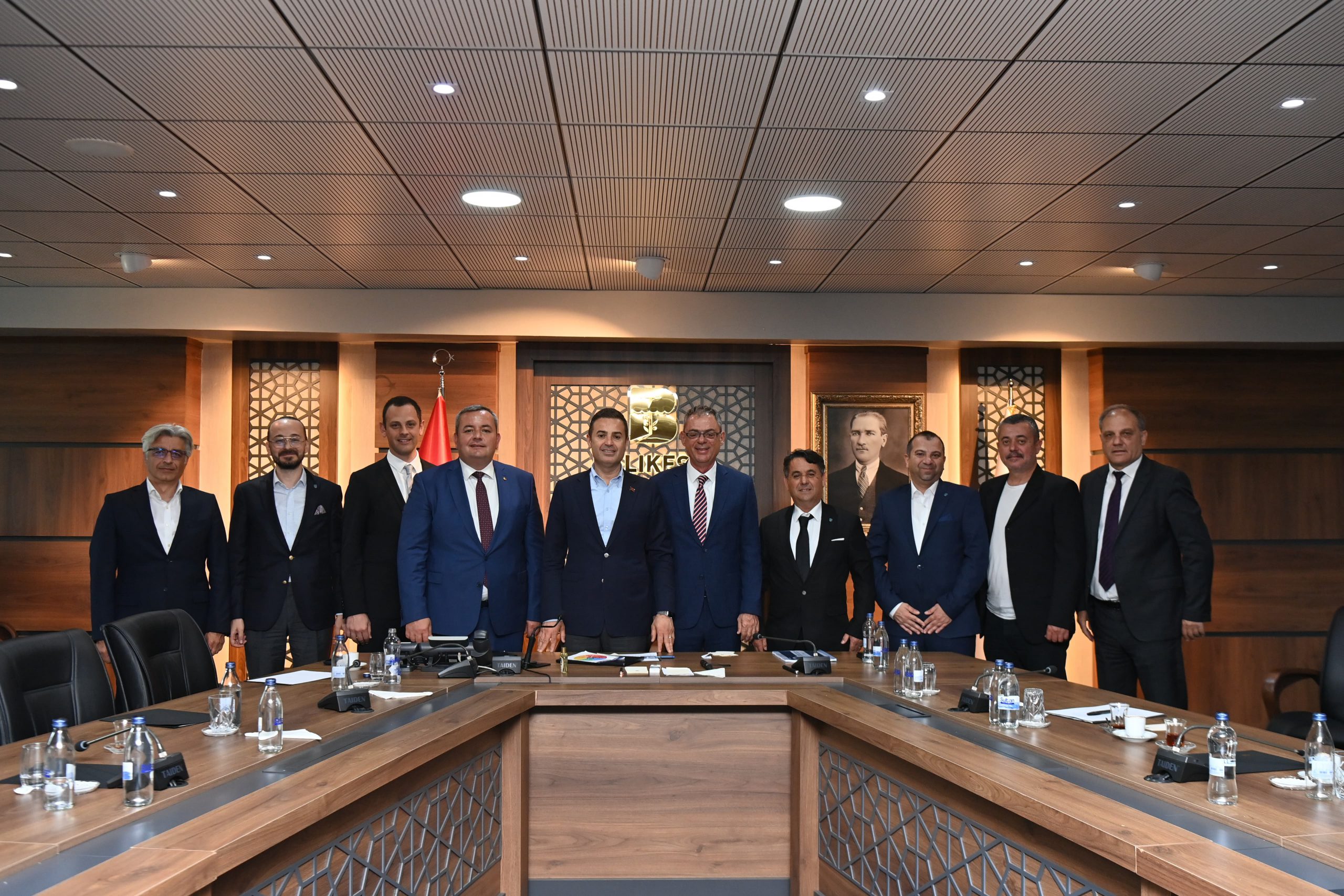 Borsamız Meclis Başkanı Recep Güngör, Yönetim Kurulu Başkanı Can Ata Tan, Başkan Yardımcıları Mehmet Aytekin ve Veysel Selvi, Yönetim Kurulu Üyeleri H. Onur Eken ve Mustafa Çömez, Meclis Üyesi İsmet Çalık ve Genel Sekreterimiz Ertunç İşbay 31 Mart Yerel Seçimleri ile göreve başlayan Büyükşehir Belediye Başkanı Ahmet Akın’ı ve Meclis Üyesi Volkan Altınöz’e hayırlı olsun ziyaretinde bulundular.