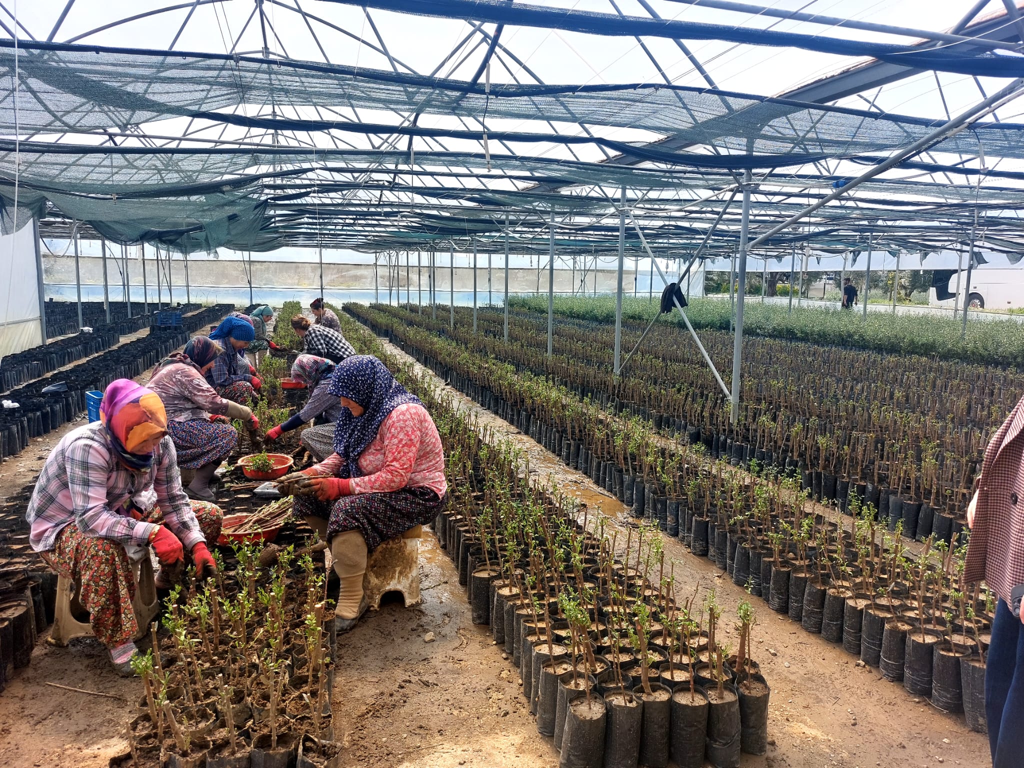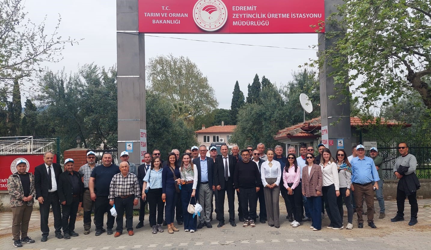 Teknik gezinin ikinci durağı olan Edremit Zeytincilik Üretme İstasyonu Müdürlüğü’nde, Tesis Müdürü Remzi Acarer, Üretim Şefi Ziraat Müh. Mustafa Kalaycı, Ziraat Müh. Kemal Karadoğan, Ziraat Müh. Aynur İlbeyi ve Teknisyen Dursun bey tarafından zeytinde tohum, çelik ve aşı ile üretim yöntemleri ile zeytin fidanı üretim aşamaları uygulamalı olarak gösterildi. Sektör temsilcilerimiz üretim süreçlerine ilişkin yerinde bilgi edinirken, zeytincilik üretme istasyonu şefleri bilgi ve tecrübelerini paylaştı.