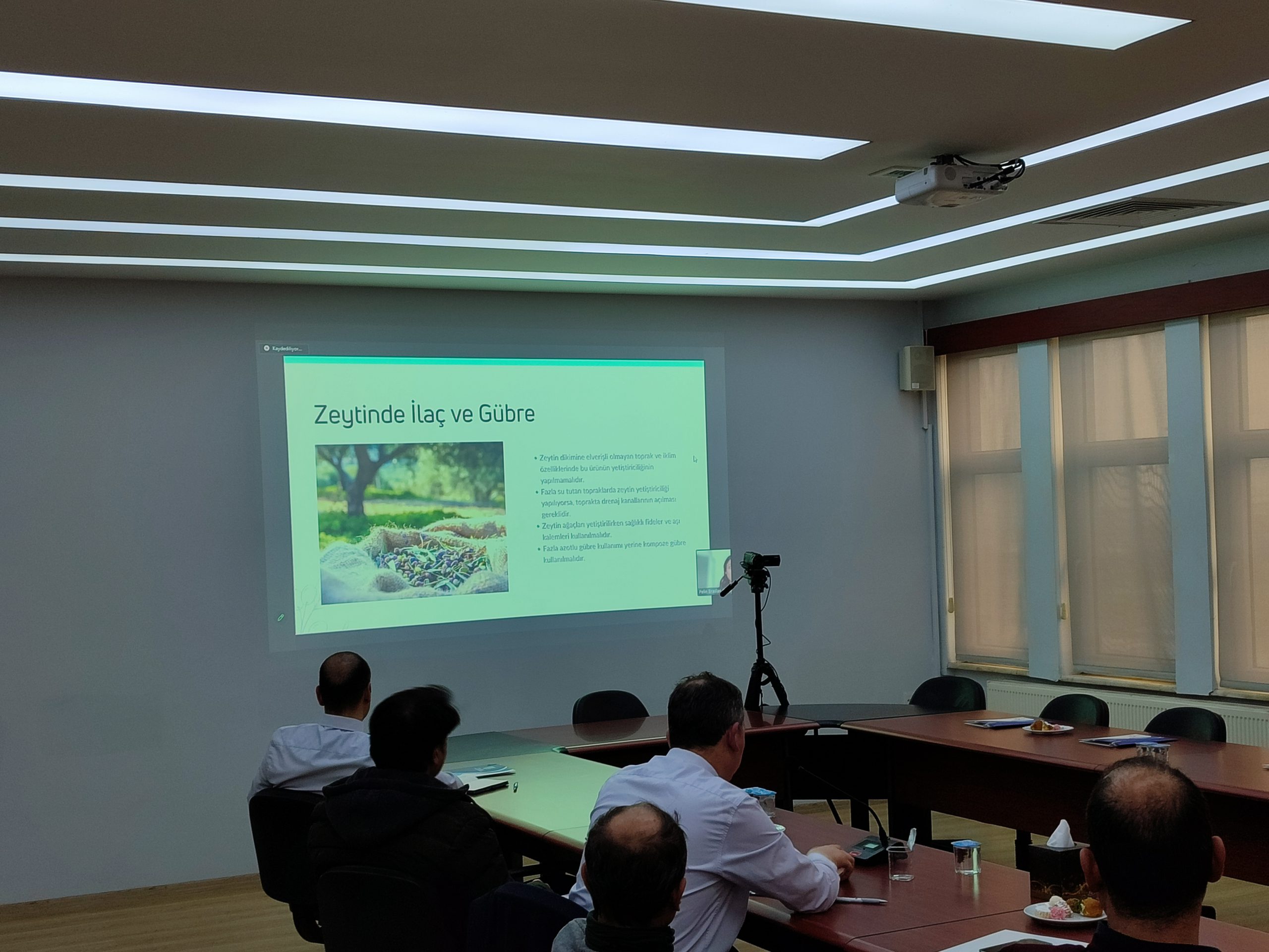 Toplantıya sunum yaparak katkı sağlayan Zeruva Tarım yetkilisi Ziraat mühendisi Pelin Eraslan güncel ve ergonomik müdahale yöntemleri, zeytin üretiminde verimlilik sağlayan mücadele yöntemleri ve dünya pazarların ki son durumlar hakkında sunum yaptı.