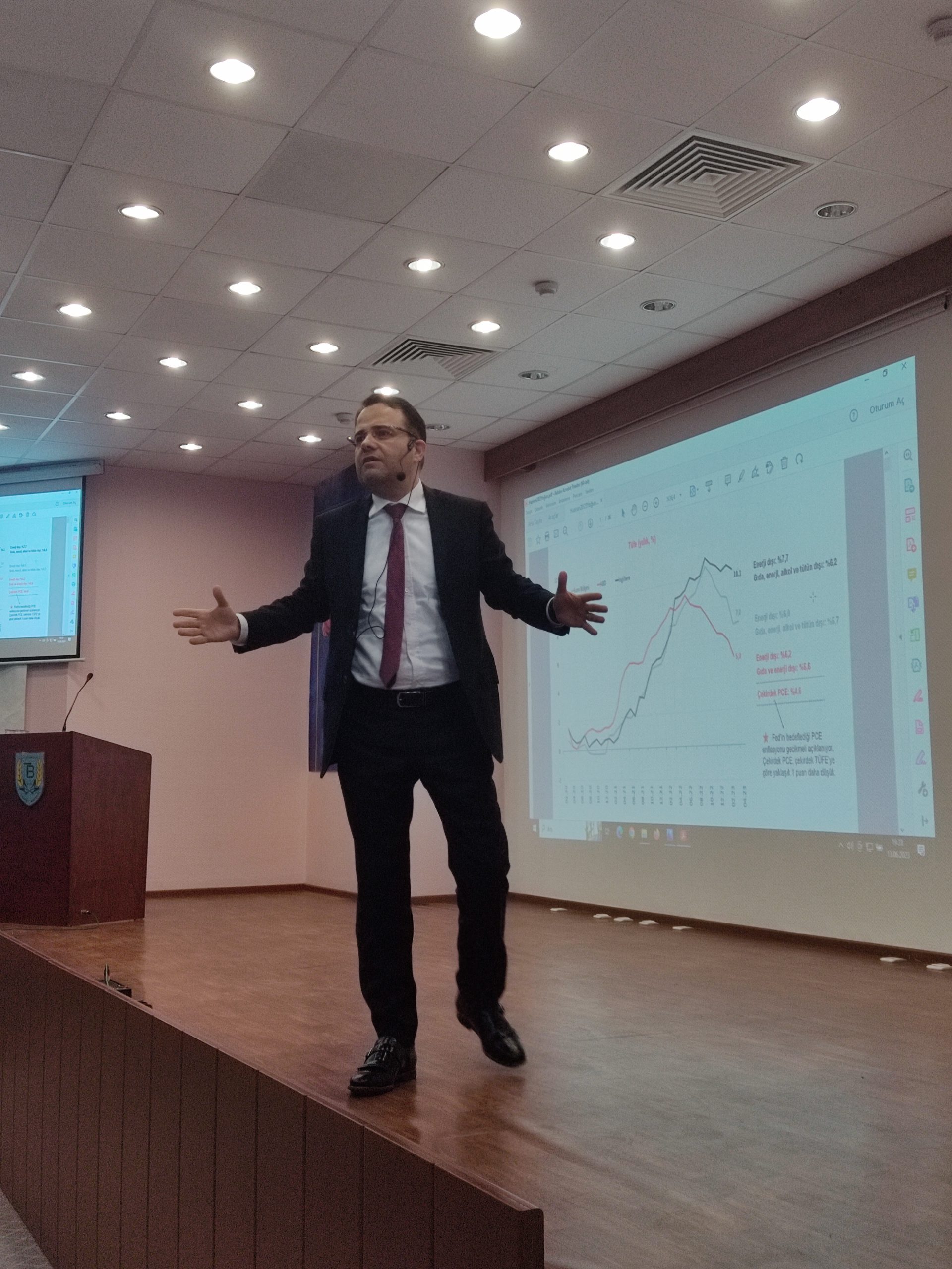 Borsamızın Konferans salonunda geniş bir katılımla gerçekleşen ve konuşmacı olarak Pof. Dr. Özgür Demirtaş’ın konuk olduğu “Ekonomideki Güncel Gelişmeler” adlı konferansta dünyadaki ve ülkemizdeki ekonomik gelişmeler göstergeler ve rakamlarla ele alındı.