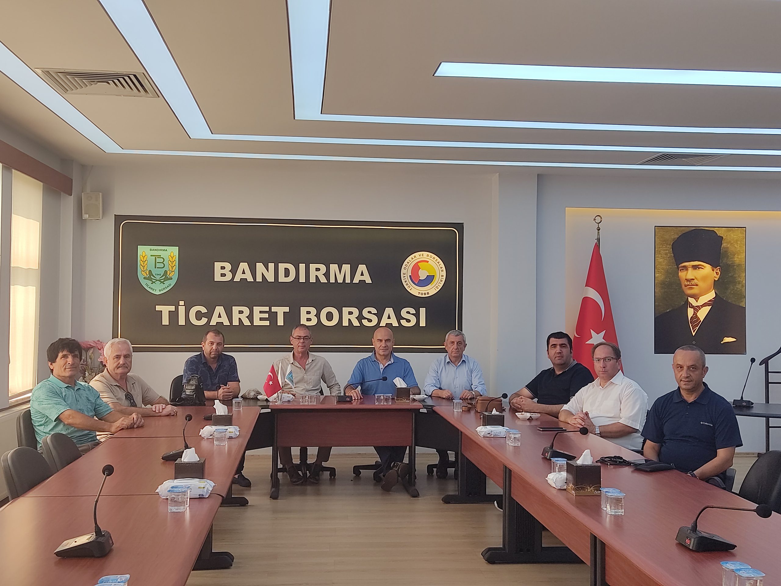Borsamız Meclis Başkanı Recep Güngör, Yönetim Kurulu Başkanı Can Ata Tan, Yönetim Kurulu Üyeleri Onur Eken ve Mustafa Çömez ve Genel Sekreter Ertunç İşbay ile bir araya gelen İyi Parti Balıkesir Milletvekili Turhan Çömez tarım politikaları, borsanın faaliyetleri ve bölgeye olan etkileri ile ülkenin tarımsal ve hayvansal üretimini değerlendirdi. Yönetim Kurulu Başkanı Can Ata Tan Bandırma Ticaret Borsası ve Lisanslı depoculuk faaliyetlerini anlatarak Turhan Çömez’e ziyaretlerinden dolayı teşekkür etti.