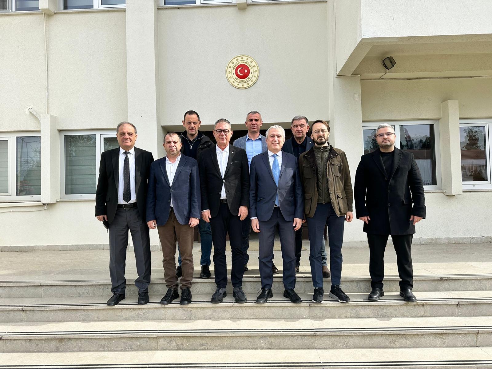 Borsamız Yönetim Kurulu Başkanı Can Ata Tan, Başkan Yardımcıları Mehmet Aytekin ve Veysel Selvi, Yönetim Kurulu Üyesi Mustafa Çömez, Meclis Üyesi Ali Turan, Hububat-Yağlı Tohumlar Meslek İhtisas Komisyon Başkanı Doğan Güngör ve Genel Sekreter Ertunç İşbay, Türkiye Cumhuriyeti Lefkoşa Büyükelçiliği Ticaret Başmüşaviri Aytaç Yenal’ı makamında ziyaret ettiler.