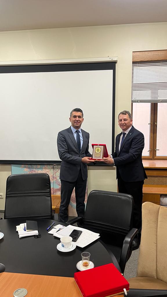 Bandırma Ticaret Borsası ve grubumuz adına büyükelçimiz ve Müşavirliğimiz yetkililerine ziyaretin anısına plaket hediye takdim edildi.